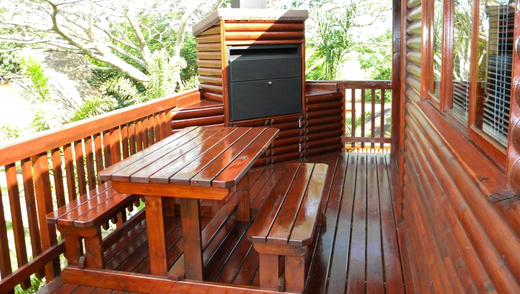 A built-in braai with storage space on an extensive deck