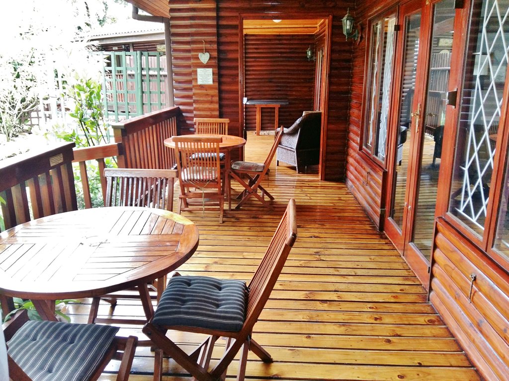 Large, extensive deck connecting the fire-pit, braai-area and kitchen