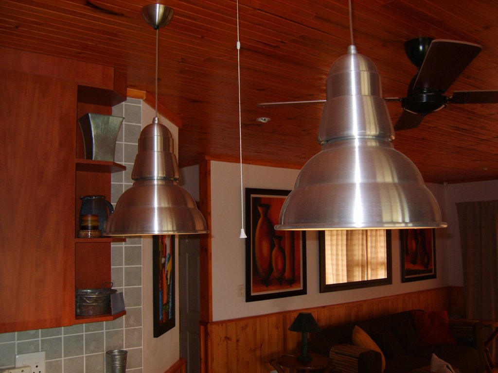 Modern Kitchen, Granite Tops And Pendulum Lights
