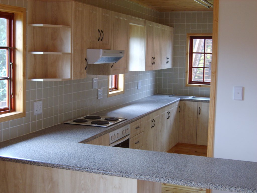 Kitchen with 'wrap' laminated kitchen units.