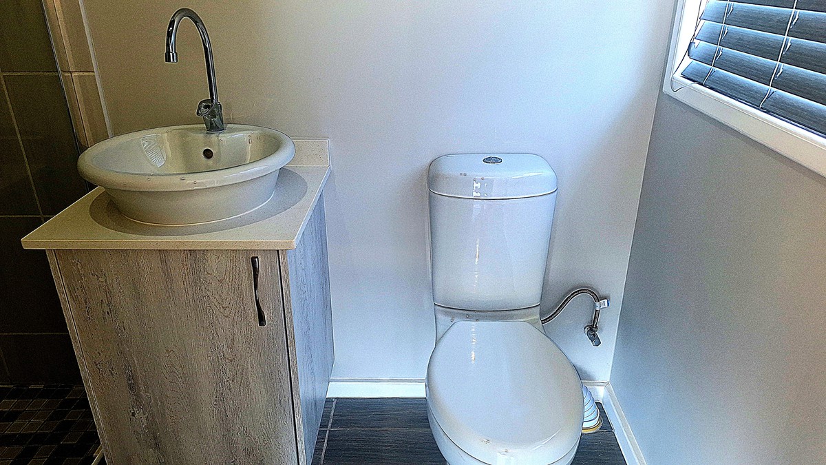 White Bedroom Furniture Made By Southbroom Timber Homes. Ceramic Floors, White Walls. Note Ample Windows